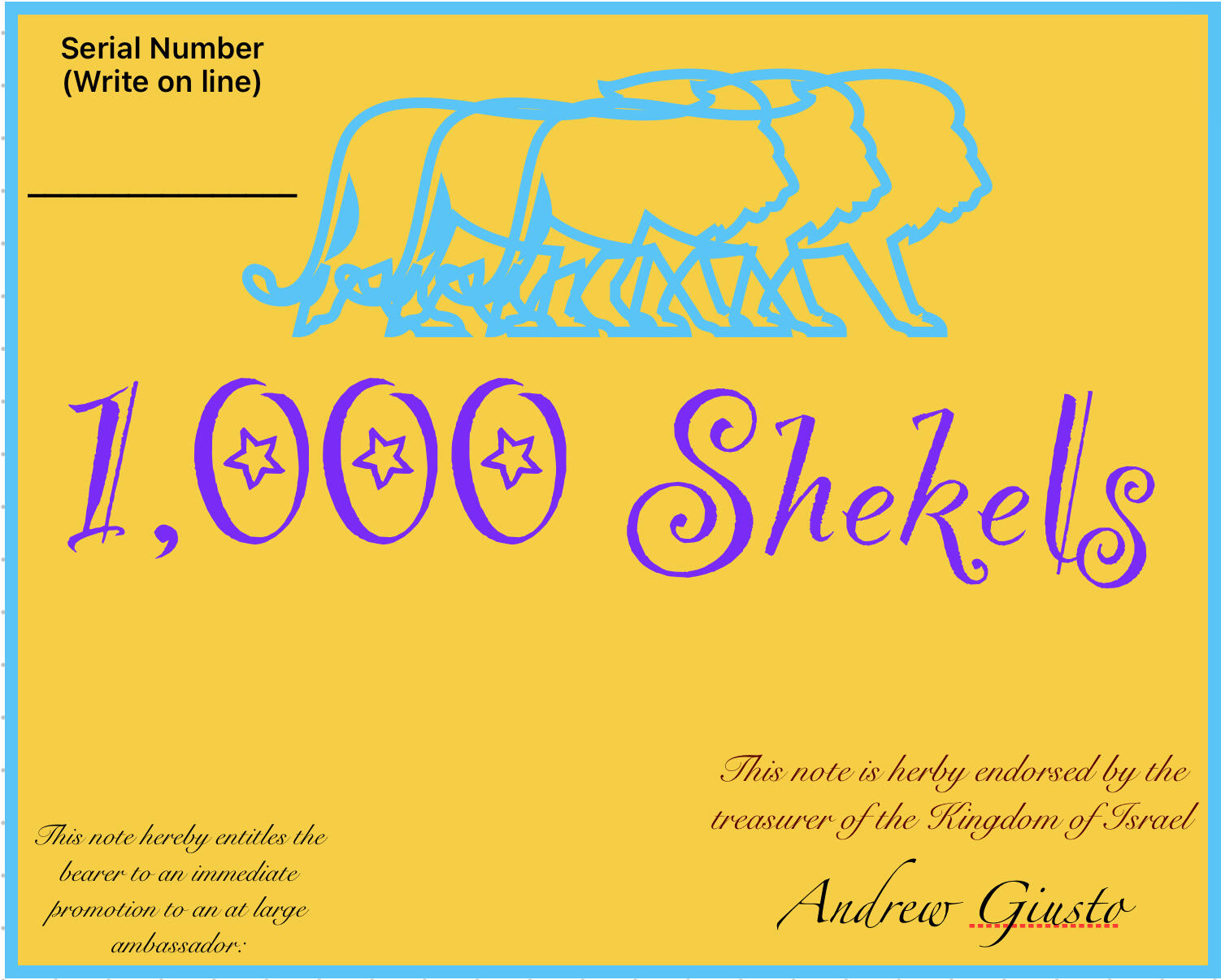 Welcome to the Kingdom of Israel foreign ministry! We believe that Israel is shared among all believers. We are all Israeli! We would like the governments of the world to recognize that the real Israel is the 2 Billion believers across the world & if so much aid is given to the Nation of Israel we say as much or more aid should be given to the Kingdom of Israel. We encourage you to join our mission!Christ is the eternal king of ths Kingdom of Israel.Andrew Giusto acclaimed artist & Political organizer has been declared the foreign minister of the Kingdom of Israel.The Ambassadorship of the United States of America has now been declared vacant
